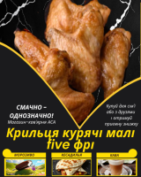 П'ять соковитих курячих крилець в класичному маринаді із спеціями, засмажених в фритюрі. Занадто смачні щоб відмовитися від них. Смакуйте з нами.