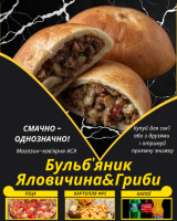 Соковита начинка з яловичим фаршем, грибами, цибулькою і зеленню в бульб’янику з картопляного дріжджового тіста. Смакувати з нами завжди вигідно.