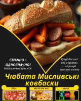 Соковита начинка з мисливськими ковбасками, майонезним соусом, пікантною морквою по-корейськи і плавленим сиром в хрусткій чіабаті. Смачно однозначно