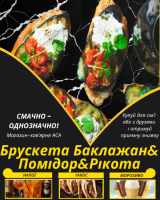 Брускета Балик&Цибуля бальзамік&Огірок&Крем-сир