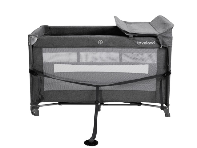 Ліжко-манеж дитяче з другим ярусом та пеленатором VELANO Tino, dark grey