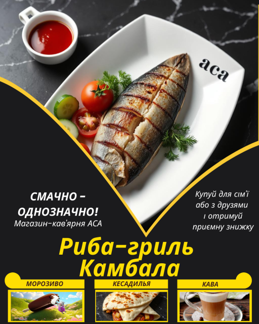 Ніжна соковита Камбала, замаринована в спеціях, приготована на грилі, гаряча і ароматна, у поєднанні з соусом до риби та свіжими овочами - однозначно викликає апетит під час їжі, а також естетичне і гастрономічне задоволення.